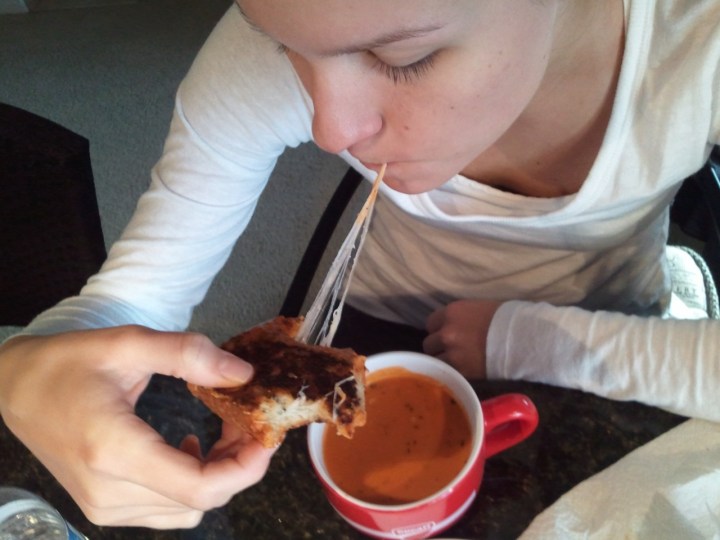 Tomato-basil soup courtesy of Safeway. Gruyere grilled cheese courtesy of heaven.