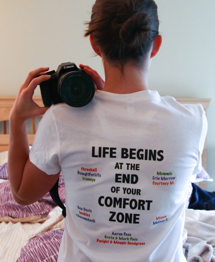 Of course, all your support helped me believe I could run this race in the first place, and I’m so grateful for all your nice comments, encouragement and American Cancer Society donations. I got some thumbs-up from other runners for the back of my t-shirt during the race, too! (I’m sure they were equally enamored of the front, too, Abel!)