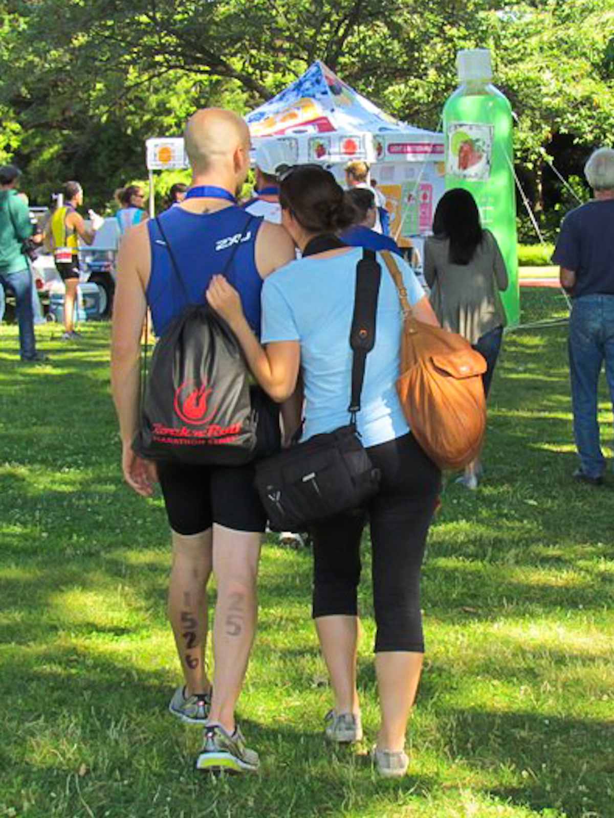 What does one do right after finishing his first triathlon? Go straight for the food, of course.