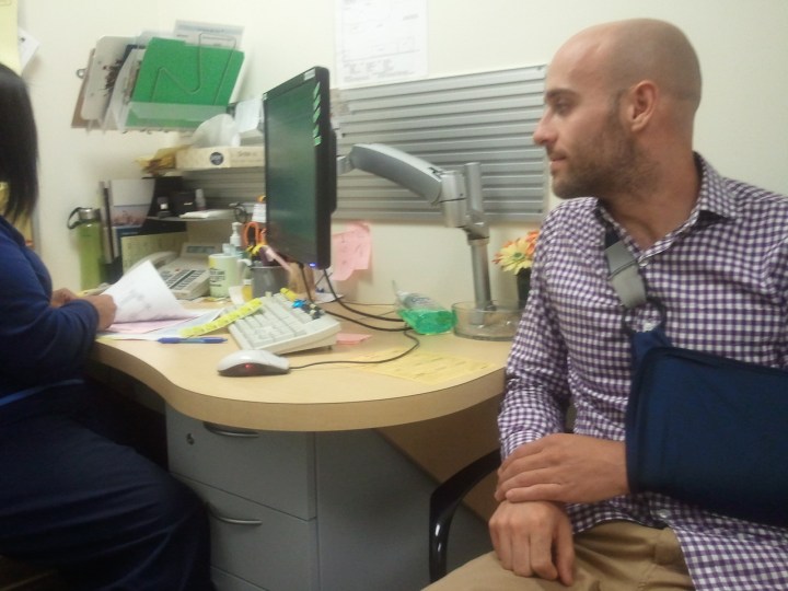 Aaron busted his left shoulder while mountain biking this weekend. The injury is similar to what he did to his right shoulder two months ago, except much, much worse. “Every ligament is completely torn” is not something you want to hear a doctor say!
