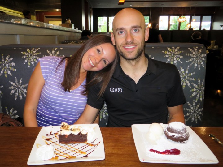 I was able to borrow a phone to call my awesome spectators — my dad and future MIL Greta — and have them meet me there. They patiently waited as I received a heavenly back, leg, and foot massage, and then we finally got to celebrate.