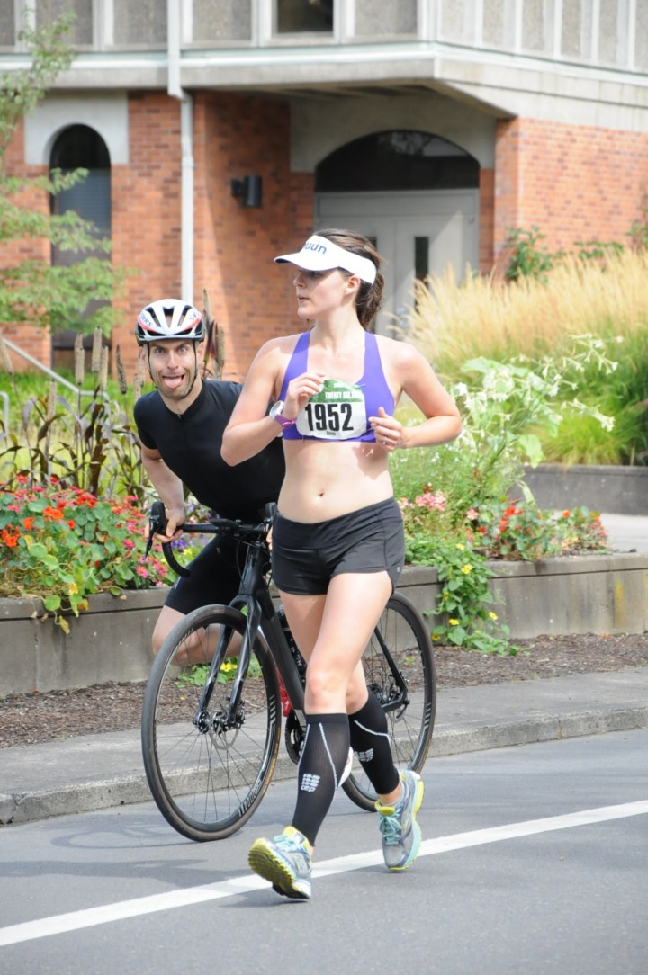 The Eugene Marathon was 1,000% worth it for this photo with @aaronpass! #mile26 #bikesherpa #bestfianceever