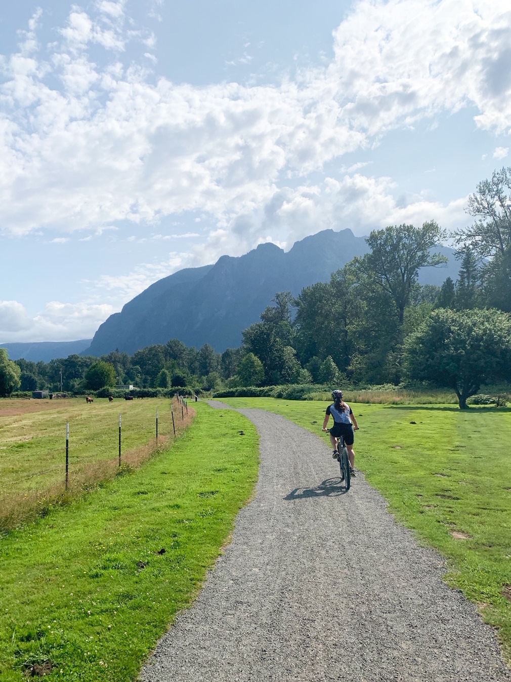 I also grew to really love my time on the bike! Riding in (mostly) perfect weather in the spring and summer felt like total bliss. It was awesome and freeing to be able to cover so much more distance in an hour on the bike than any hour I’d ever spend running, and I got to see my usual running routes in new ways. I was also able to do a few rides with Aaron when the grandparents were watching Evie, which was super fun for me and probably very slow and boring for him. 🙂